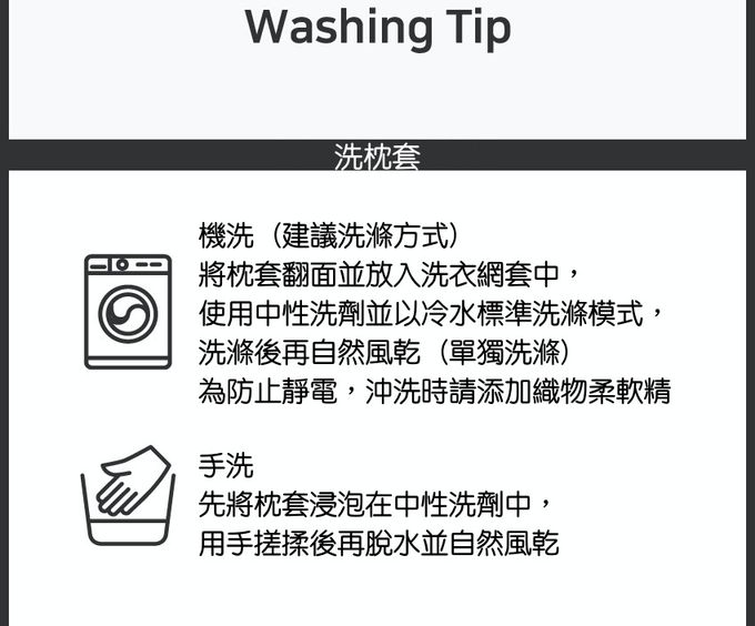 4. 枕頭套建議反面洗可以維持色彩度,建議前幾次單獨洗滌。