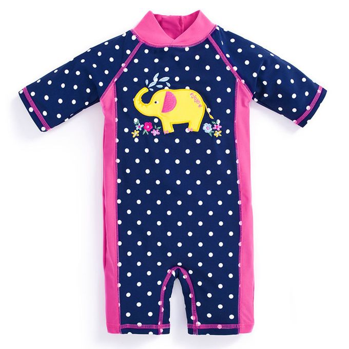 英國 JoJo Maman BeBe - 嬰幼兒/兒童連身式防曬泳裝-黃色大象