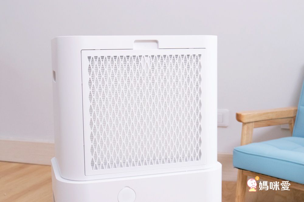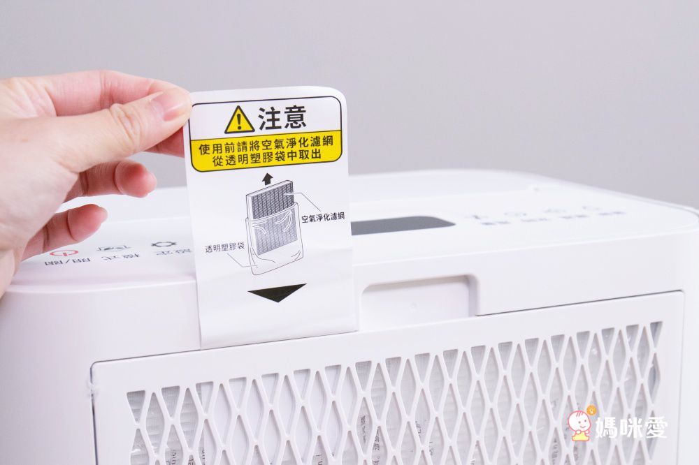 接著來看看空氣清淨的功能吧!媽咪收到的時候不要太興奮,記得先將濾網外層的塑膠袋拆開,否則就達不到清淨空氣的功能啦(妞妞媽多年前也做過這種蠢事呢)