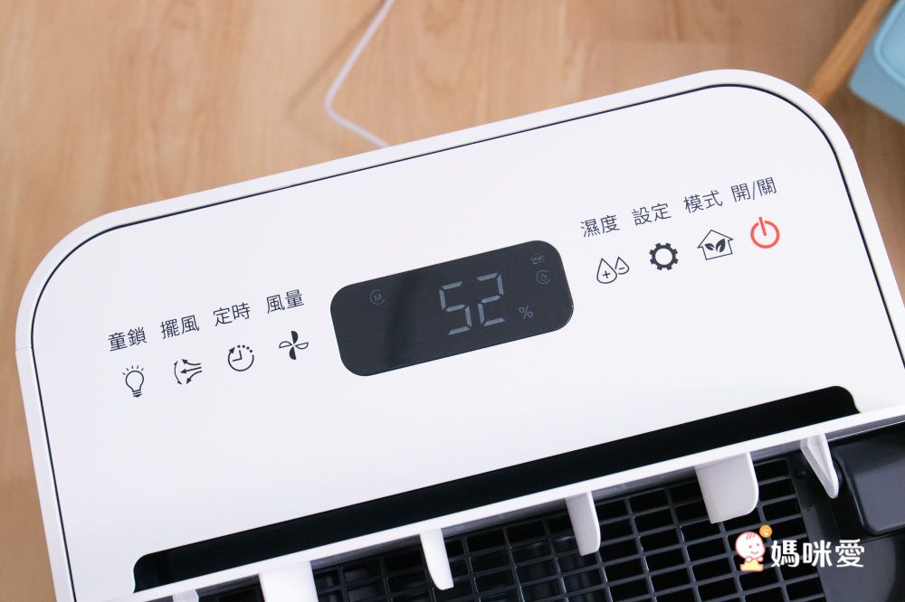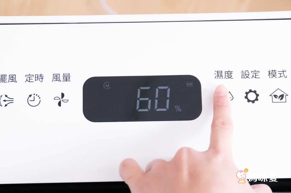 先來說說除溼功能吧!面板非常清晰會直接顯示目前空間的濕度,除了機器內建的固定模式可以挑選之外,還有許多功能可以個人化調整喔!