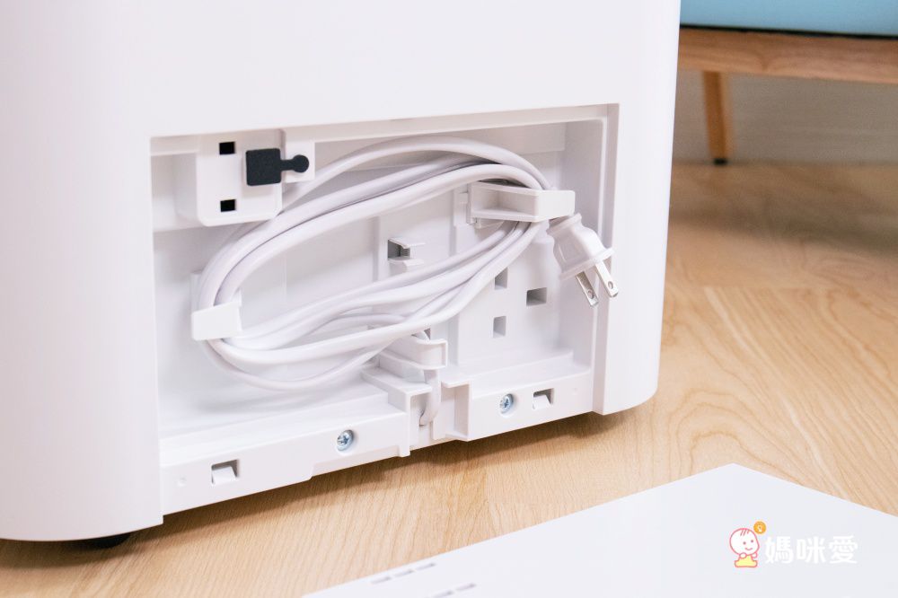 最令人滿意的就是電線的收納,我個人非常喜歡這個設計巧思,一般不使用機器的時候,落在地上的電線很煩人,有時候還會被絆倒或是被孩子當成玩具,這個可以隱藏收納的設計完全打中了身為設計師的我的啊!