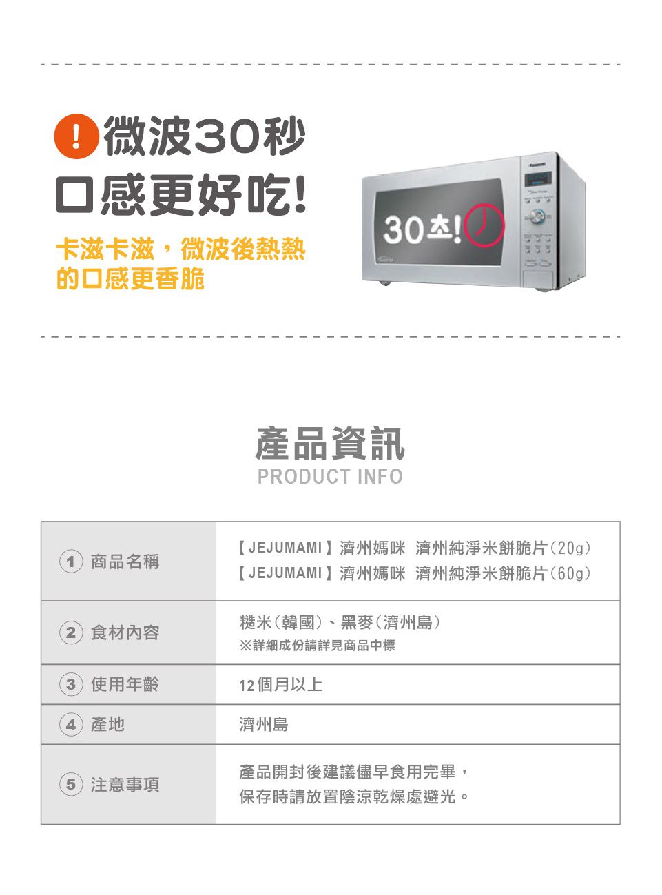 台灣的天氣比較潮濕,把米餅微波30秒後,會得到更酥脆的口感!也可以加在牛奶或優格裡面進行創意新吃法!