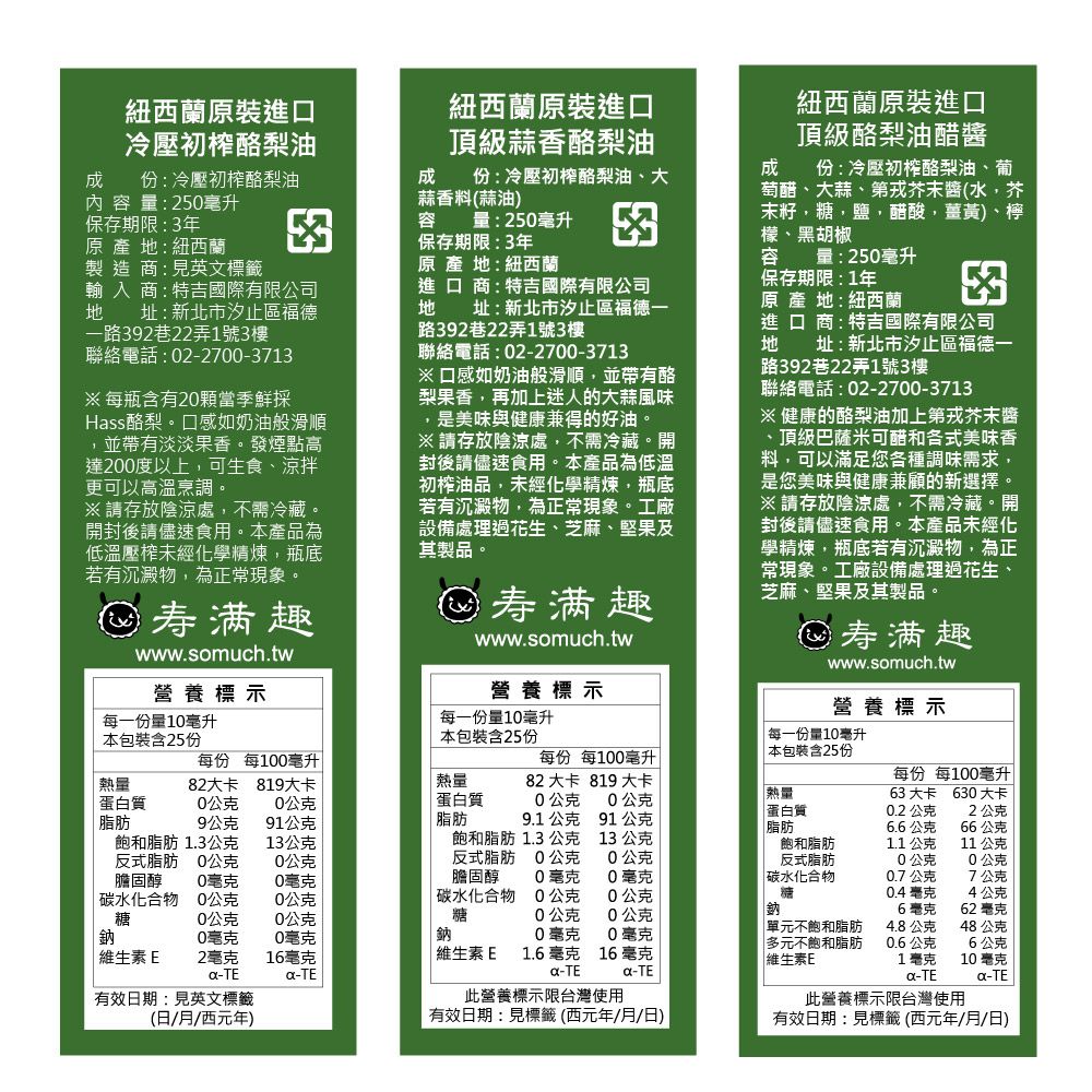 台灣的食安問題,讓每個人對飲食生活更小心,從食材到選油都會格外謹慎!尤其中式料理,大多是以高溫快炒的方式烹駐,因此選油時更要注意,才不會好的食材因為油的變質,反而吃得不健康!今天推薦媽咪的是:近年在煮婦之間很流行的酪梨油,大家都知道酪梨是一種營養價值非常高的水果,不過其實酪梨也是一種很好的榨油原料喔~以獨有的奶油滑順口感,不只涼拌適合,酪梨油擁有 200 度以上發煙點的特點,更是高溫煎炒的好選(✧≖‿ゝ≖)