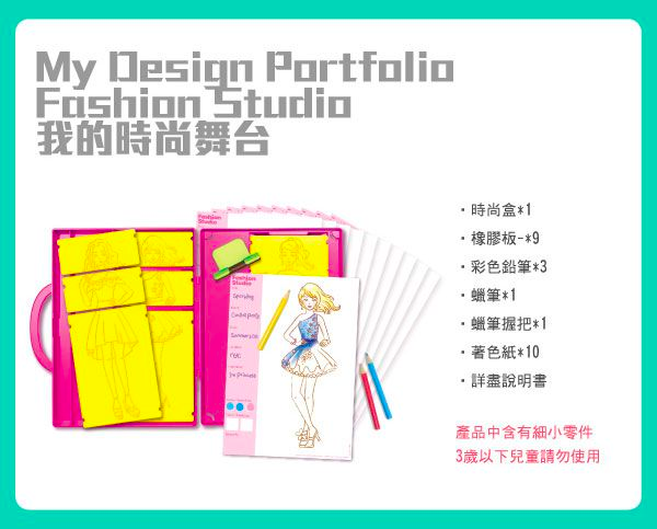 4M 的「我的時尚舞台 My Design Portfolio Fasshion Studio」是以時裝設計為主題的拓印畫畫組。外盒設計成可愛的手提包,孩子一眼就愛上。