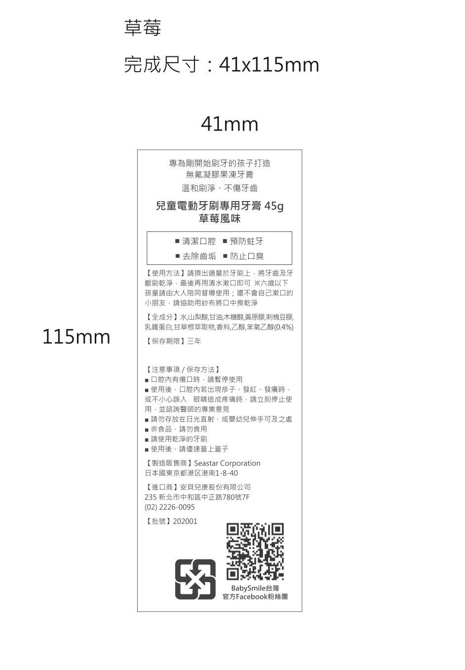 日本 BabySmile - 電動牙刷專用牙膏-草莓-0歲以上