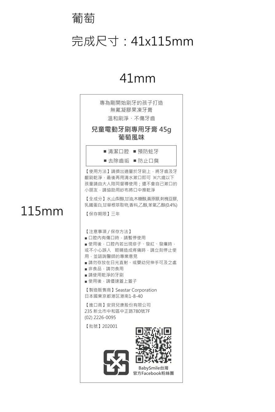 日本 BabySmile - 電動牙刷專用牙膏-葡萄-0歲以上
