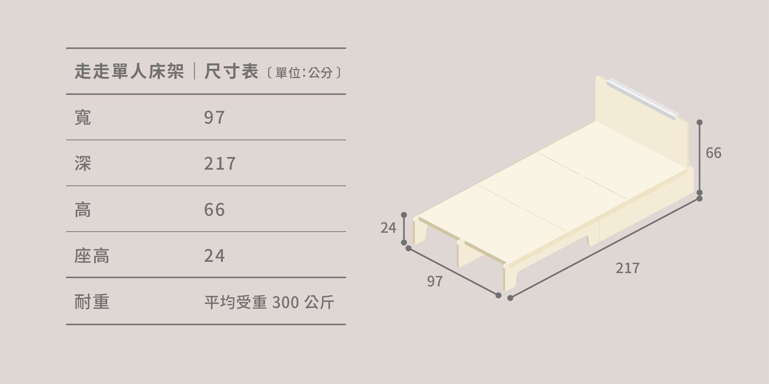 走走家具 - 模組單人床架-沉穩灰 (97 / 217 / 66 (cm);座高 24 (cm))
