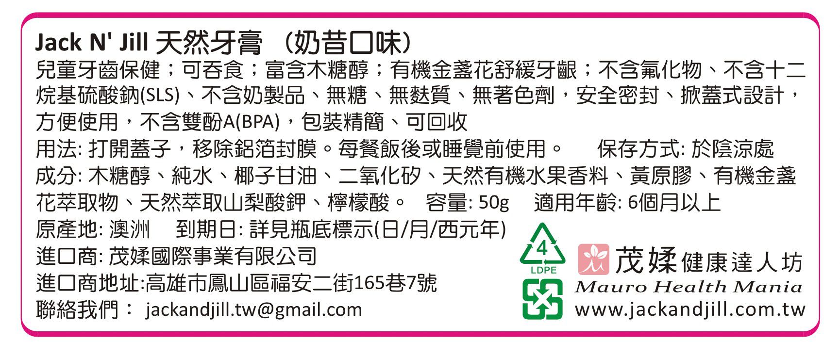 保存方式: 於陰涼處容量: 50g適用年齡: 6個月以上到期日: 詳見瓶底標示(日/月/西元年)原產地: 澳洲