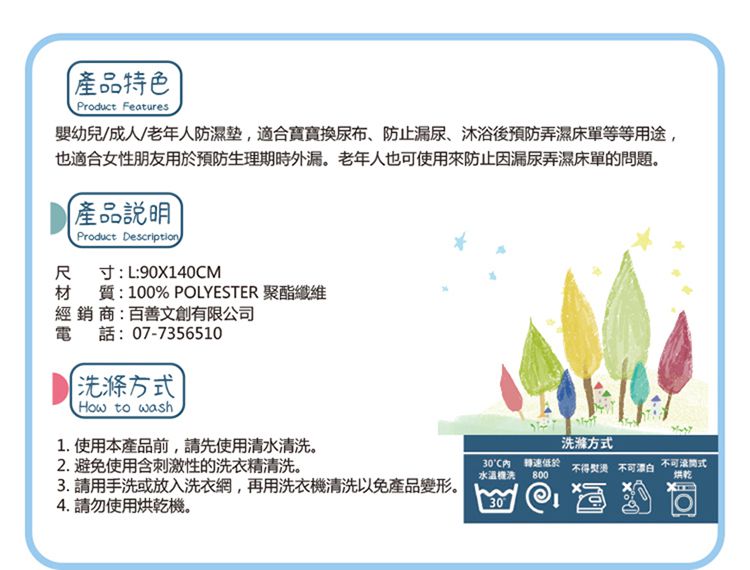 品名:嬰幼兒/成人防濕墊(尿布墊)