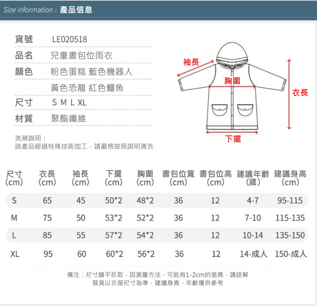 來看看上小學的哥哥來試穿雨衣看看,哥哥123cm 20公斤穿L號雨衣是落在小腿的部分,平時只要搭配雨靴或者是跟哥哥一樣穿一雙涼鞋也可以哦!因為有設計書包空間,所以背起來長度也不會跑掉,還是有到小腿的部分哦!