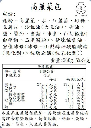 京采 Bao·Mantou - 高麗菜包 (4入) (全素)-140克/顆