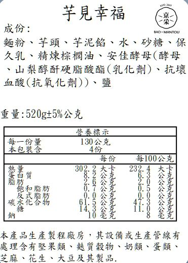 成分:麵粉、水、砂糖、芋頭、芋泥、保久乳