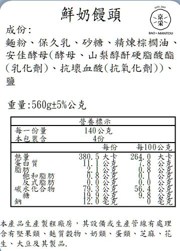 京采 Bao·Mantou - 鮮奶饅頭(4入)(奶素)-140克/顆