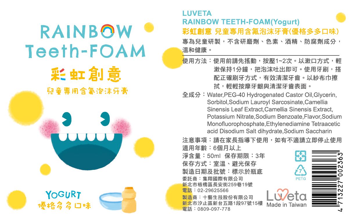 Luveta 樂唯他 - 兒童專用含氟泡沫牙膏-優格多多 (含氟量1000ppm)-台灣製