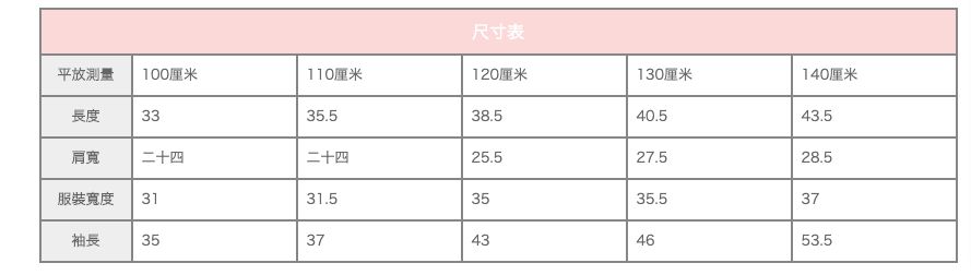 尺寸:100、110、120、130、140