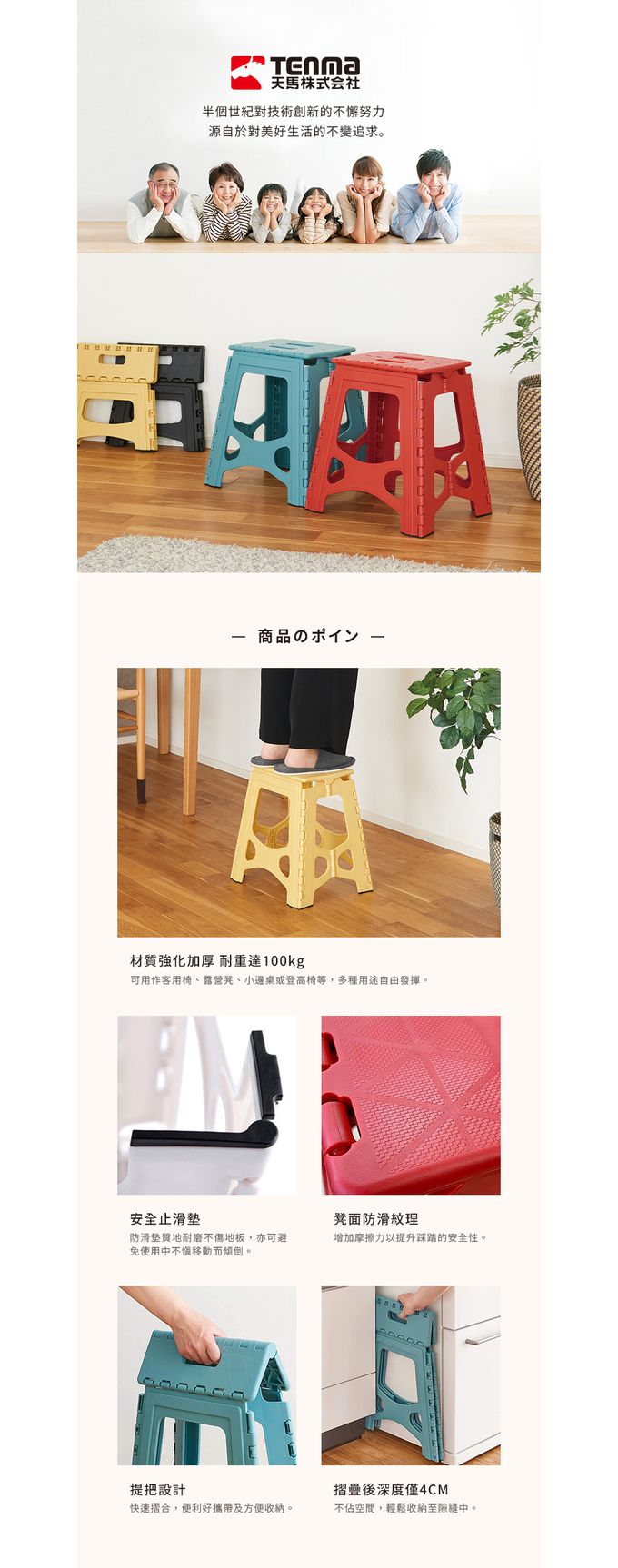 日本天馬 - 快收耐固便攜式防滑摺疊/摺合椅-高22CM-典雅白