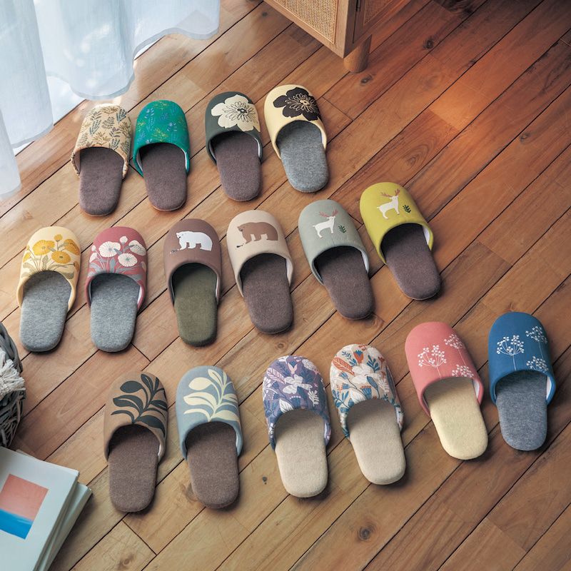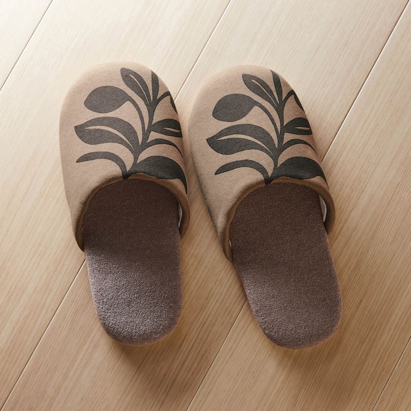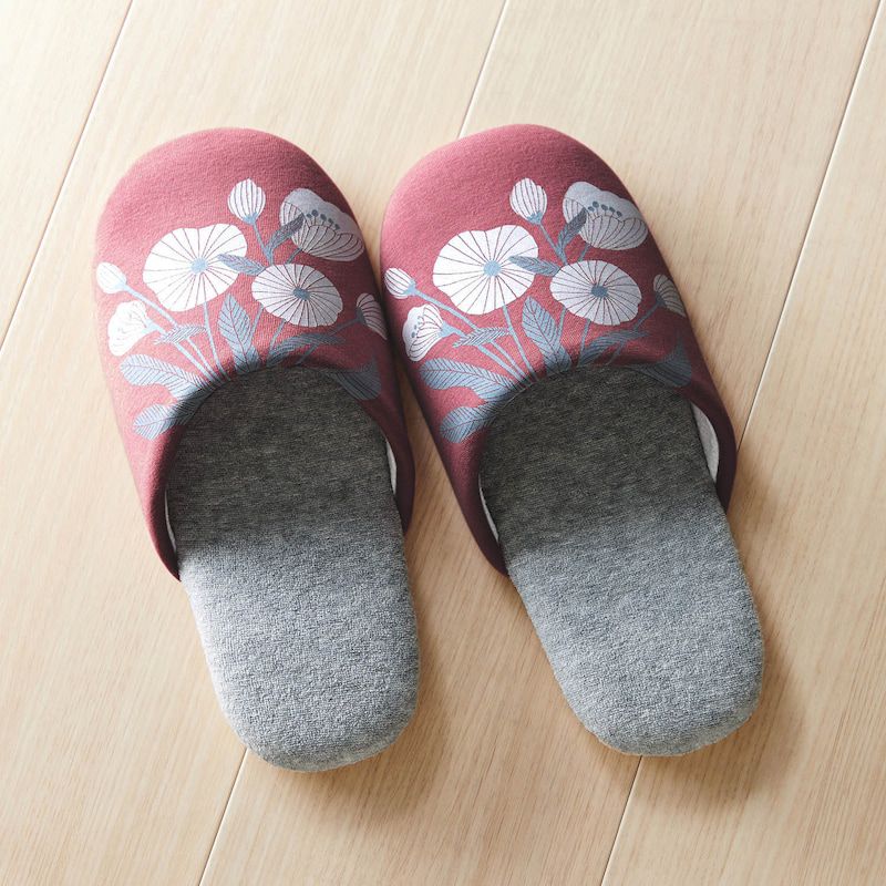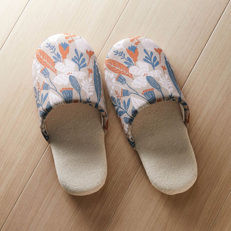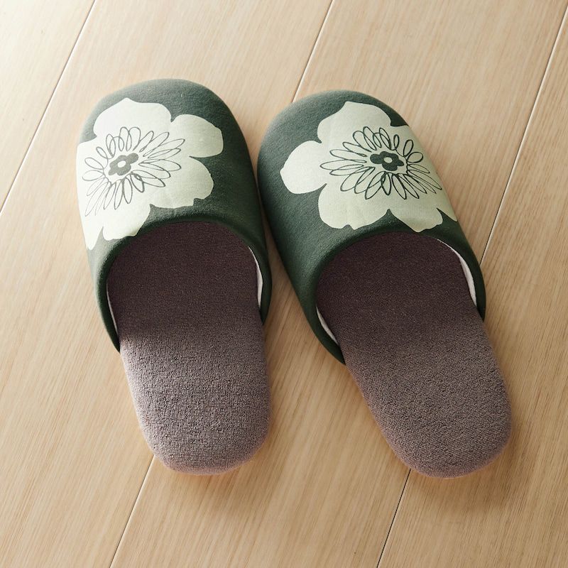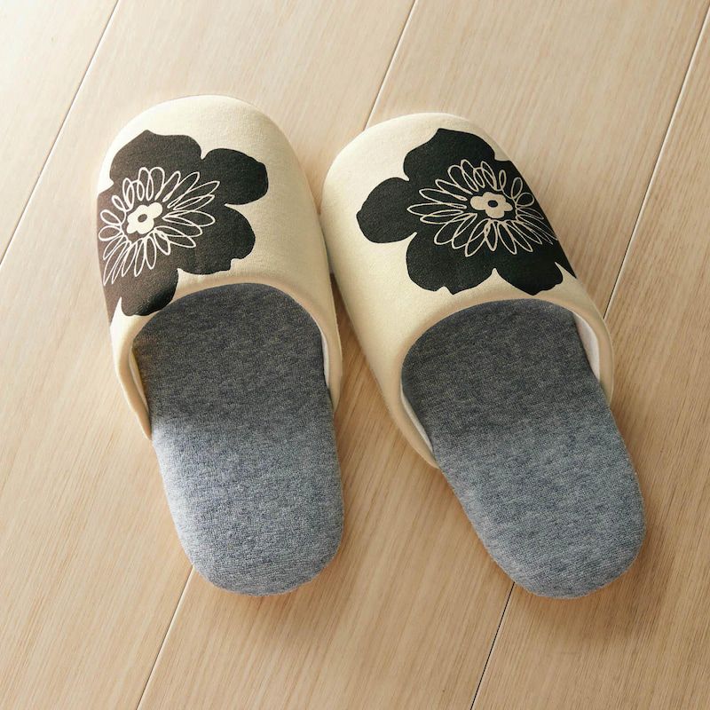 日本千趣會 - 北歐風 印花室內拖鞋-綻放花朵-深灰