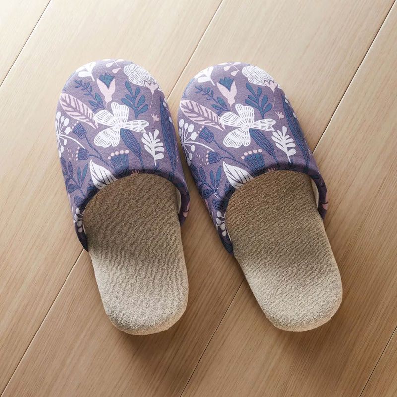 日本千趣會 - 北歐風 印花室內拖鞋-小兔花叢-粉紫