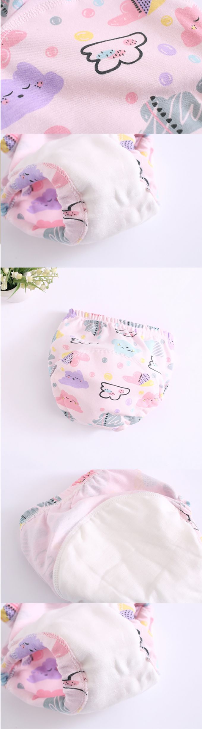 JoyNa - 學習褲 嬰兒尿布褲 鬆緊隔尿褲-3件入-粉小兔子頭+隨機2入