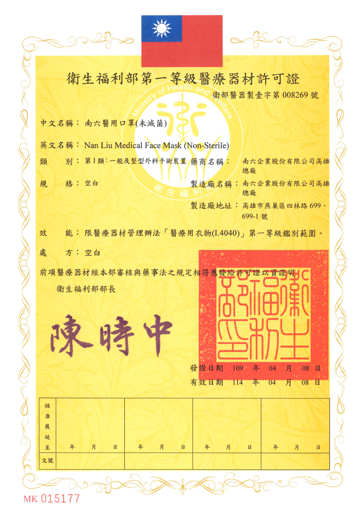 南六 - 新適戴醫用口罩-雙鋼印-清新綠 (長175mm*寬9mm)-50入/盒