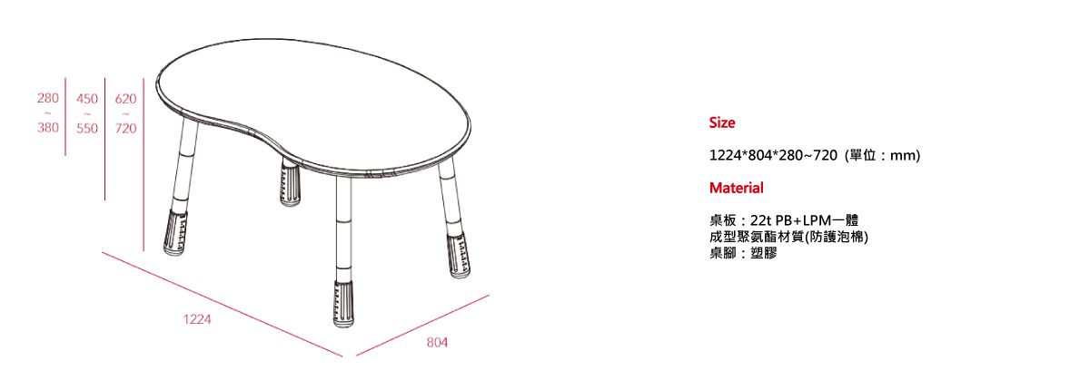 1200型豌豆桌除了旋轉桌腳套,還可以加裝延伸組,高度調整可以從28cm~72cm!