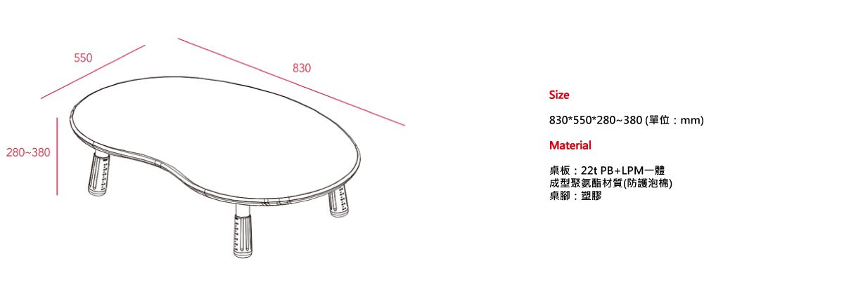 1200型豌豆桌除了旋轉桌腳套,還可以加裝延伸組,高度調整可以從28cm~72cm!