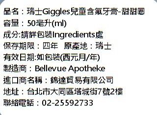 瑞士Giggles - 兒童牙膏(1-6歲)-甜甜圈 (效期至:2023.3)-氟含量 500ppm