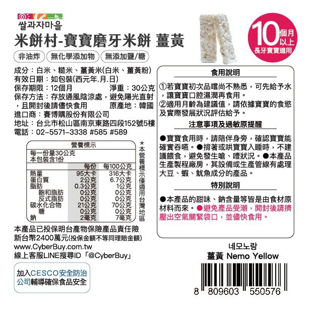 吃出健康的點心!使用韓國稻米與糙米,添加蔬菜與水果,讓寶寶在快樂的點心時間補充營養。