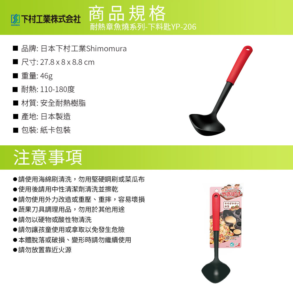 品名:日本製耐熱章魚燒系列-下料匙/耐熱湯杓YP-206