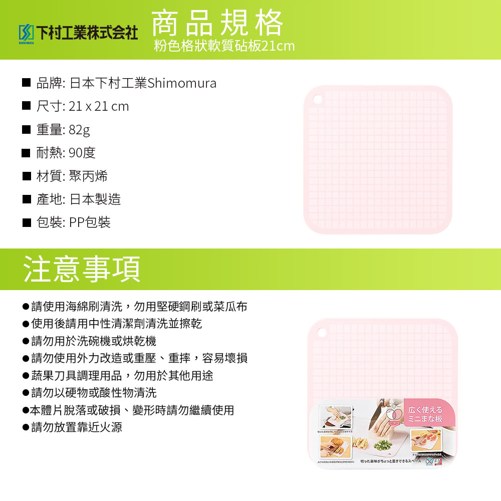 日本下村工業 Shimomura - 日本製粉色格狀軟質砧板21cmPC-604