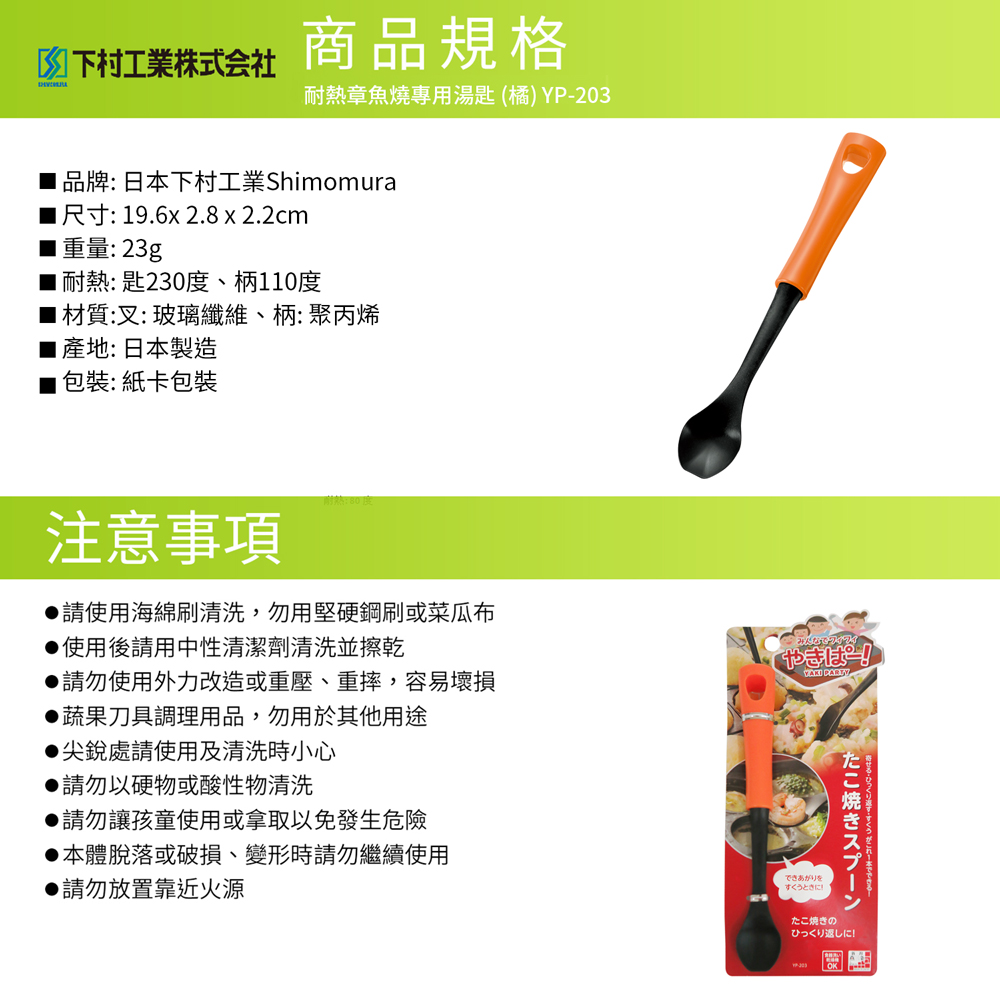 品名:日本製耐熱章魚燒專用湯匙 (橘) YP-203