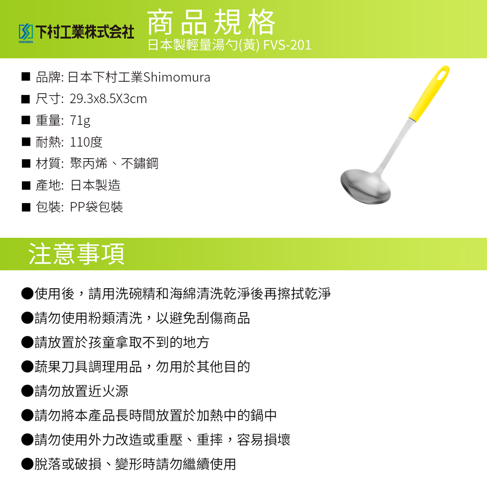 品名:日本製輕量湯勺黃