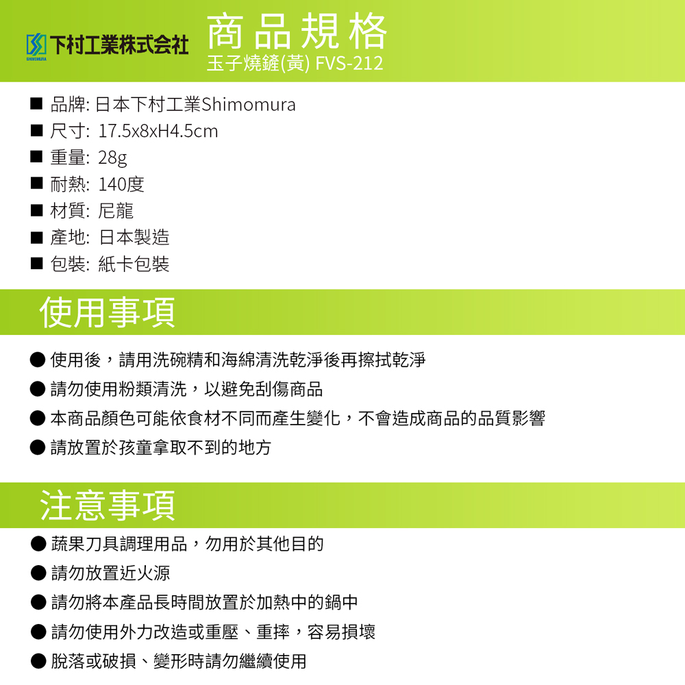 日本下村工業 Shimomura - 日本製耐熱玉子燒鏟(黃) FVS-212