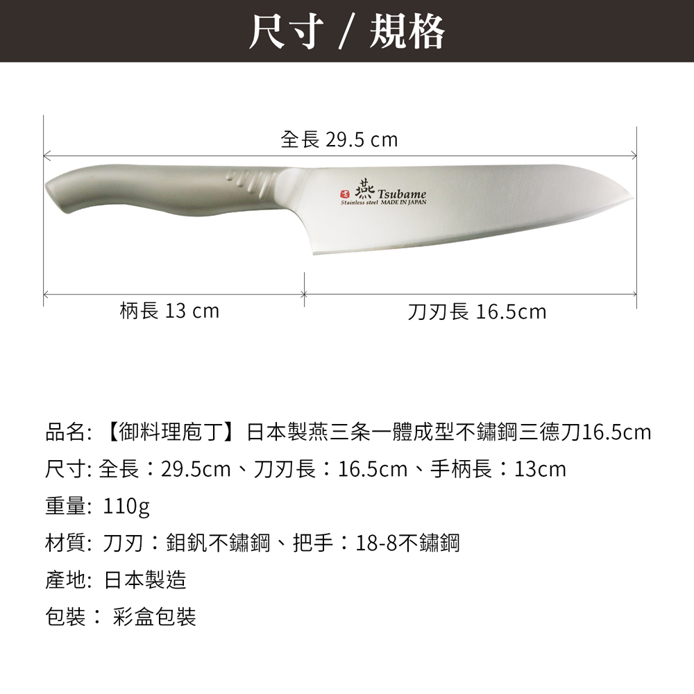 日本製燕三條一體成型不鏽鋼三德刀16.5cm