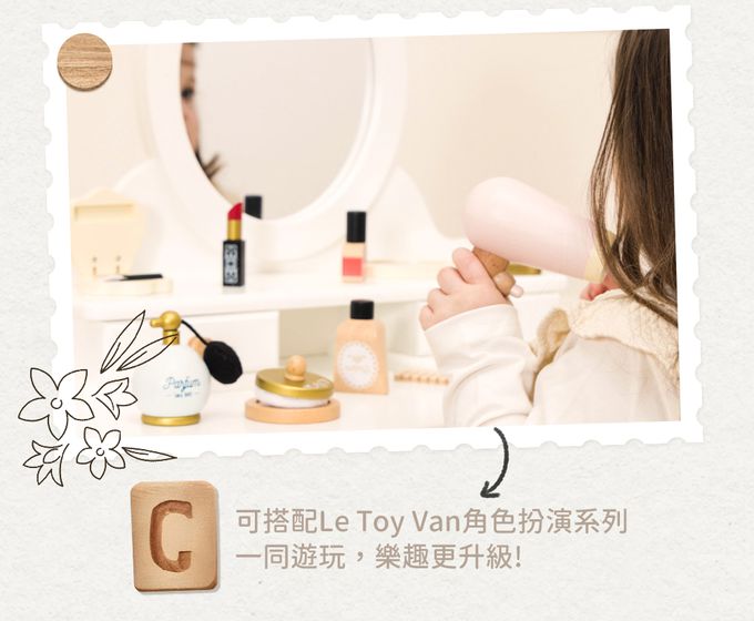 。精緻高雅用色,搭配部分金色亮邊的點綴,造就出一組獨一無二的時尚造型玩具組