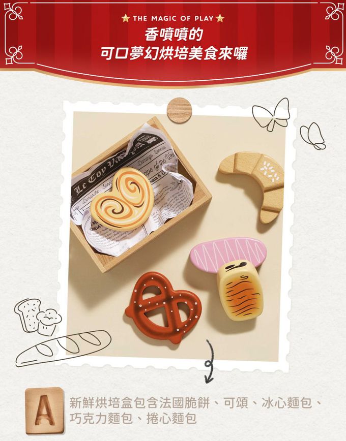 。可與 "市集攤位大型玩具組" 相容,變成販賣的新鮮烘培盒