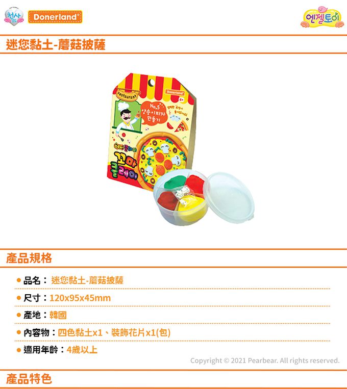 韓國 Donerland - 迷您黏土-蘑菇披薩