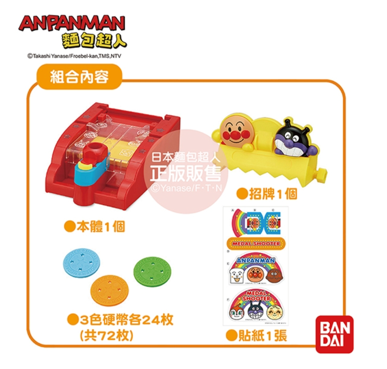 麵包超人聲光硬幣射擊遊戲,內附3種顏色硬幣共72枚,