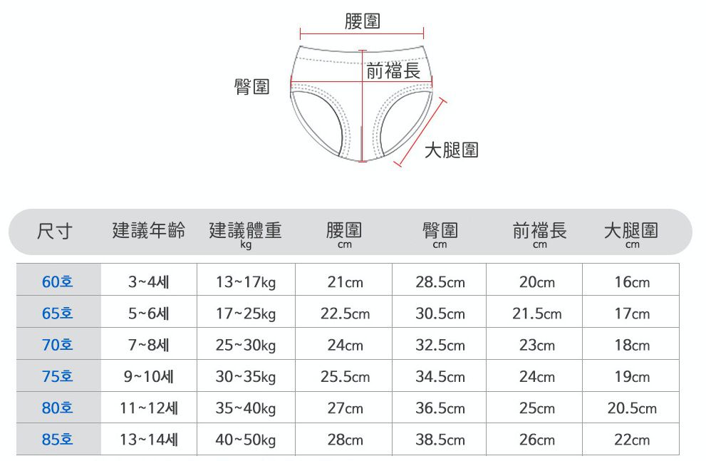 • 注意事項:身高年齡僅為參考依據,請依照實際測量尺寸為準。