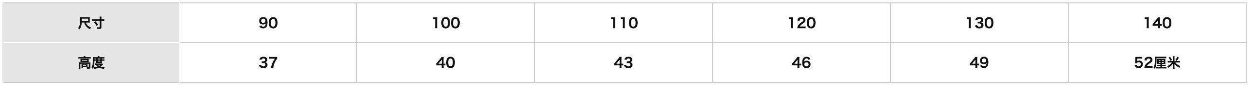 尺寸表如下,由上而下依序是尺寸、衣長~