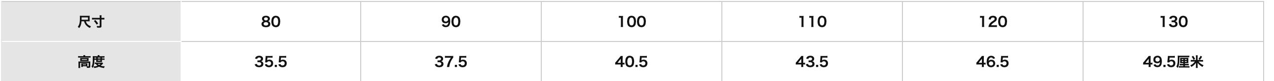 尺寸表如下,由上而下依序是尺寸、衣長~