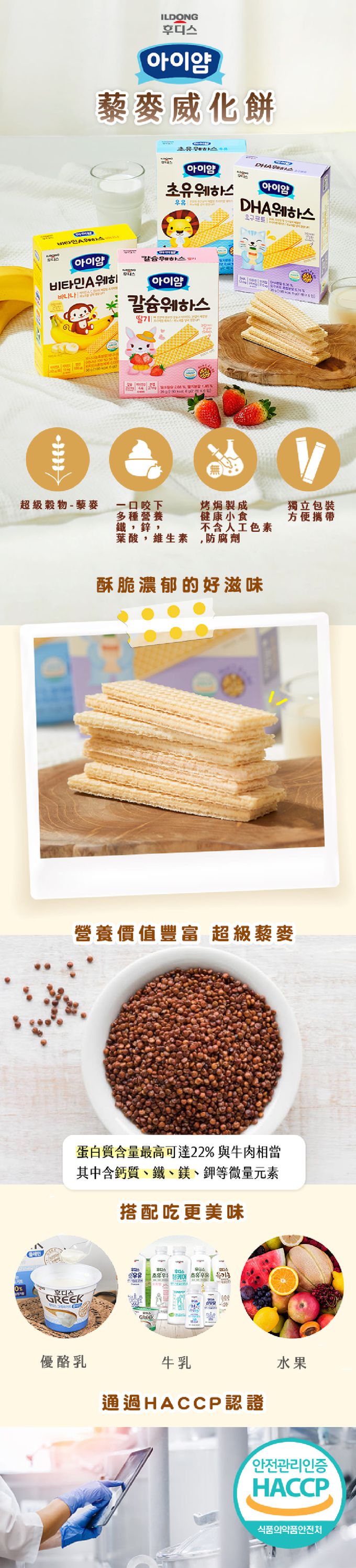 韓國Ildong Foodis日東 - 藜麥威化餅-初乳牛奶