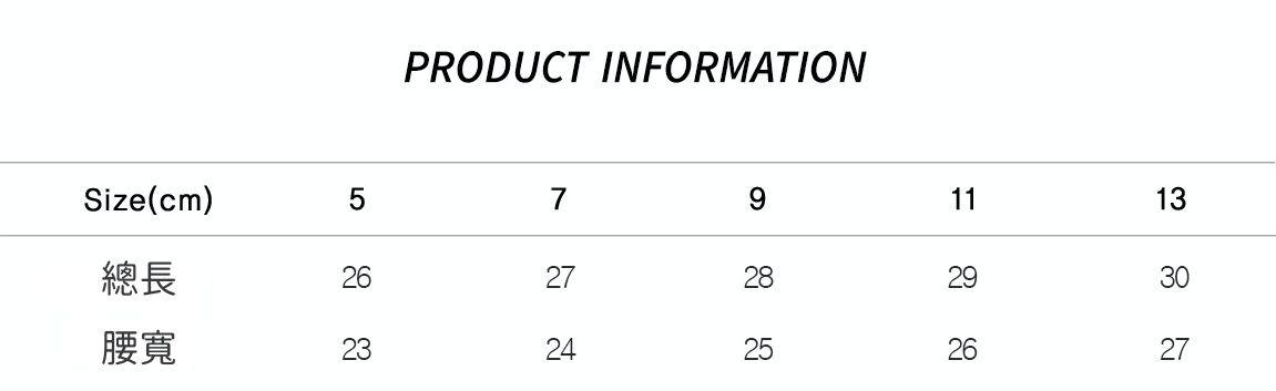 • 尺寸:5[90-95cm]、7[95-105cm]、9[105-115cm]、11[115-125cm]、13[125-130cm]