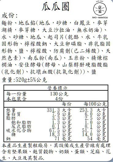 京采 Bao·Mantou - 瓜瓜圈(4入)(全素)-130克/顆