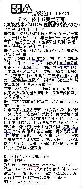 皮卡丘兒童牙膏-蘋果香-含氟量600ppm-60g