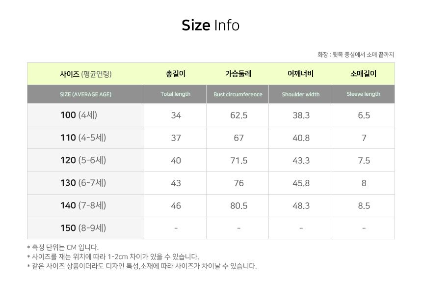 • 注意事項:尺寸表中年齡僅為參考依據,請以實際測量尺寸為準。根據拍攝光線以及電腦顯示器不同,可能存在些許色差。