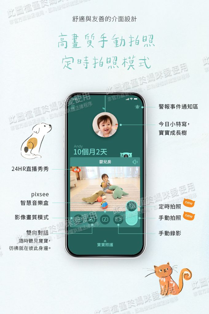 【商品鑑賞期非試用期】 ★ 備註:開箱文章「pixsee AI智慧寶寶攝影機」拍攝照片影片,皆為原色呈現,沒有修圖調過色!爸爸媽媽可以看看呈現效果唷! |