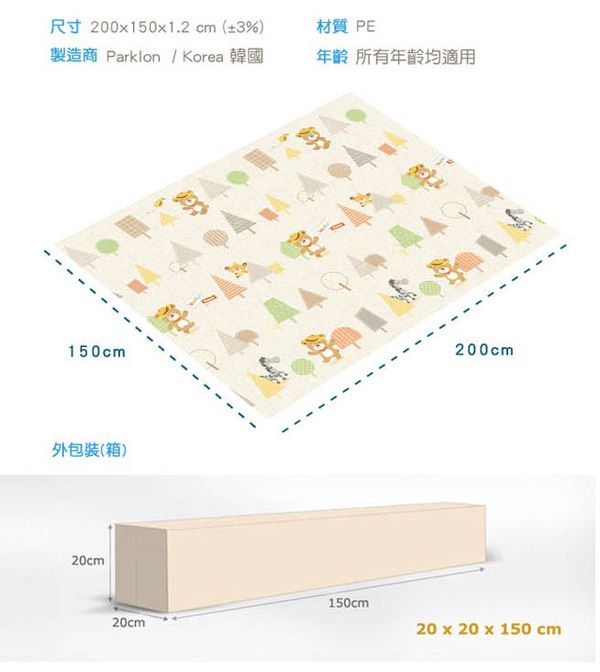 韓國 Parklon 帕龍 - 單面切邊地墊-動物123 (200x150x1cm)