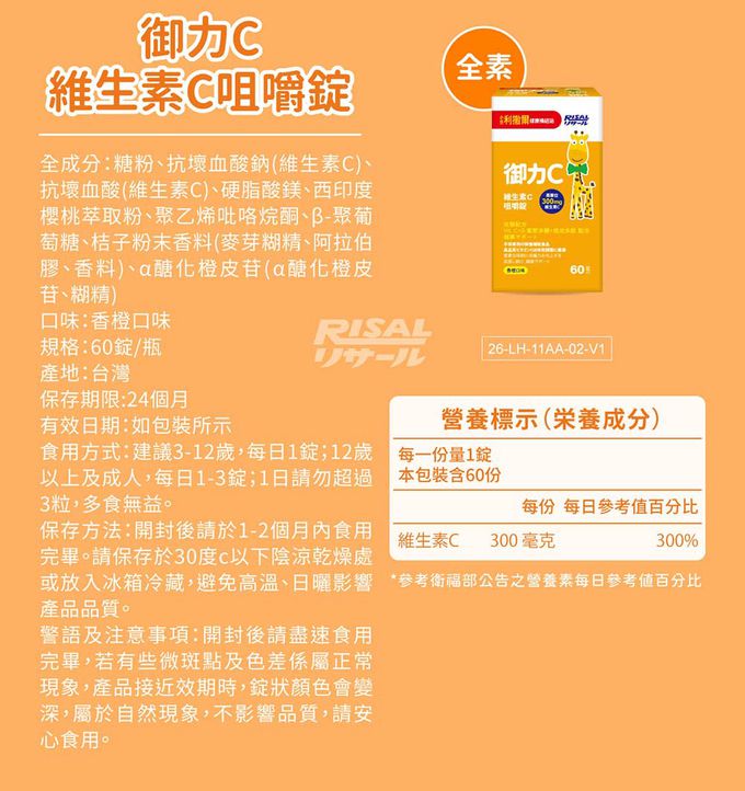 小兒利撒爾Risal - 御力C 維生素C咀嚼錠-60錠/瓶
