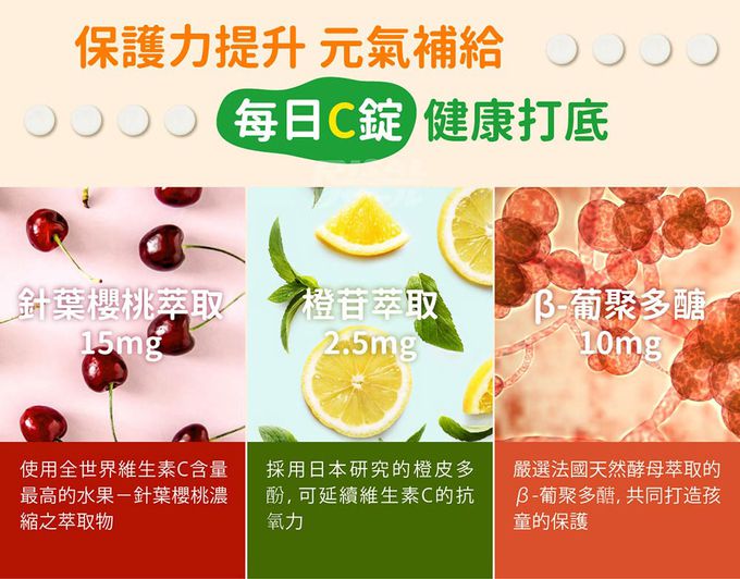 已回購數次的好商品!高單位維生素C,增添健康抗氧力,每日一錠,為寶貝的元氣打底讓爸媽很安心。